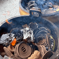 點燃嚴選的供材。這份香氣將轉化為六道眾生所需的能量,並由土地公向上呈報眾神佛,向下施予眾生